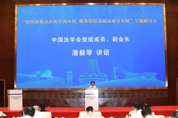 潘毅琴代表中国法学会对研讨会召开表示热烈祝贺。她指出,党的十八大以来,以习近平同志为核心的党中央高度重视营商环境建设,作出一系列重大决策部署,推动我国营商环境持续优化。要把牢政治方向,深入学习贯彻习近平法治思想和习近平总书记关于法治化营商环境建设的重要论述,坚定不移走中国特色社会主义法治道路,坚定维护法学领域意识形态安全。要加强理论研究,深化法治实践,推动更多优秀研究成果转化为决策参考,转化为法治化营商环境建设的生动实践,以担当作为的实际行动推动法治化营商环境建设走深走实,服务保障边疆高质量发展,为在法治轨道上全面深化改革、推进中国式现代化作出更大贡献。