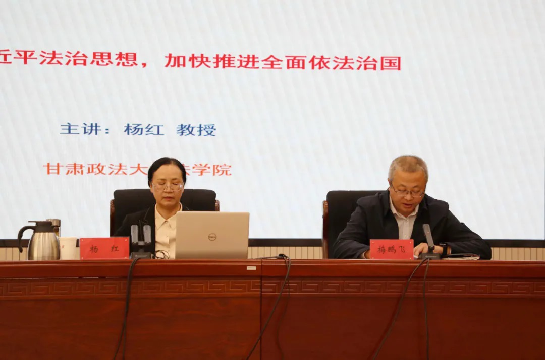 报告会邀请甘肃政法大学法学院教授、法学博士、宪法学与行政法学专业硕士研究生导师、中国法学会行政法学研究会理事杨红作专题报告。区委政法委分管负责人主持报告会,各镇(街)政法委员、区政法各单位干警代表共计100余人参加。