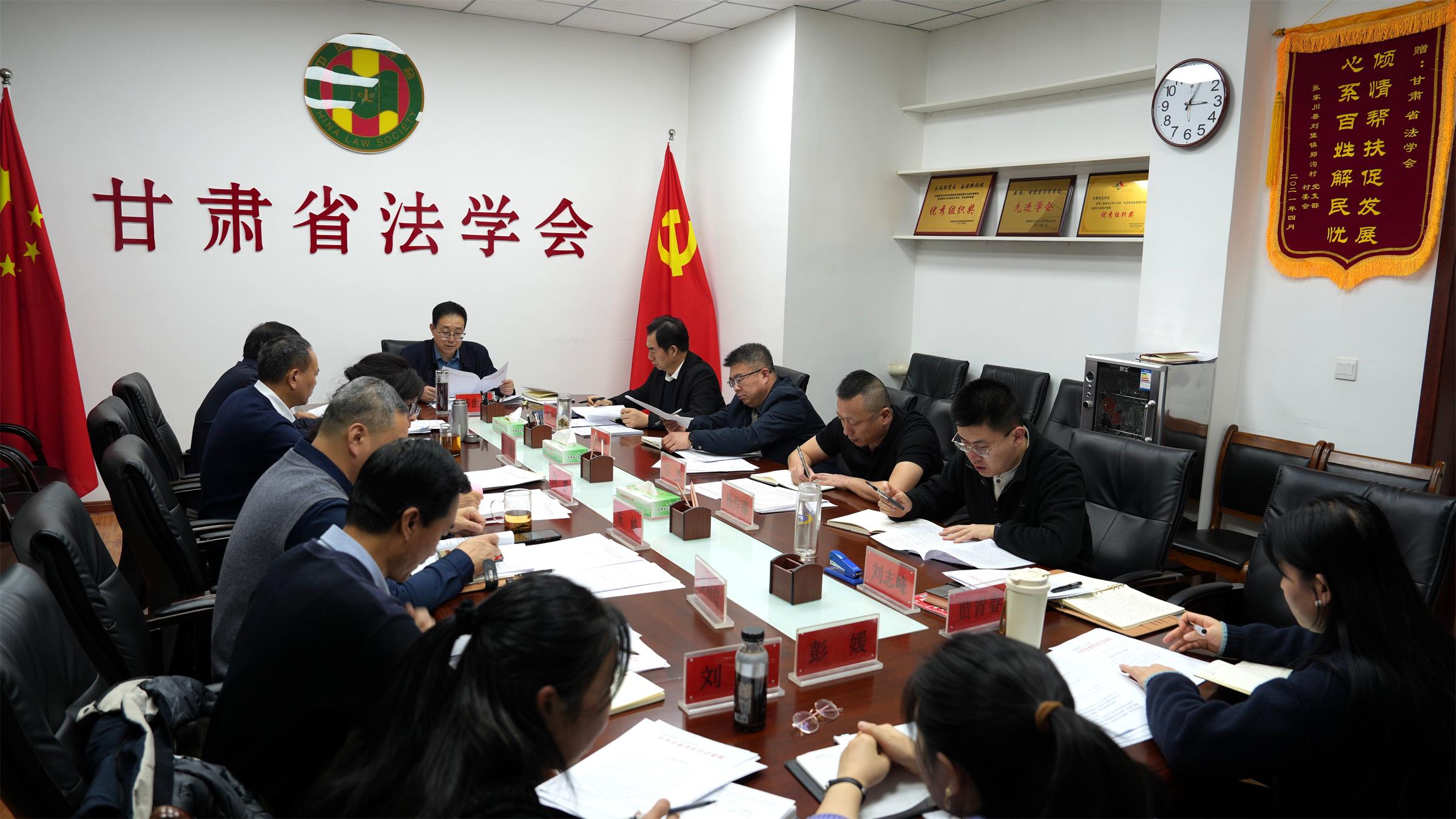 1月13日,甘肃省法学会党组召开2026年第1次(扩大)会议,传达学习习近平总书记重要讲话重要指示精神,传达学习《中国共产党领导全面依法治国工作条例》,传达学习陈文清同志在有关会议上讲话精神,传达学习省委十四届九次全会精神和省委常委会会议、省委政法委委务会相关会议精神,研究贯彻落实意见,安排部署重点工作。省法学会党组书记、常务副会长韩世峰主持,省法学会党组成员、专职副会长杨学鹏,党组成员、秘书长刘鹏文参加,全体党员列席。