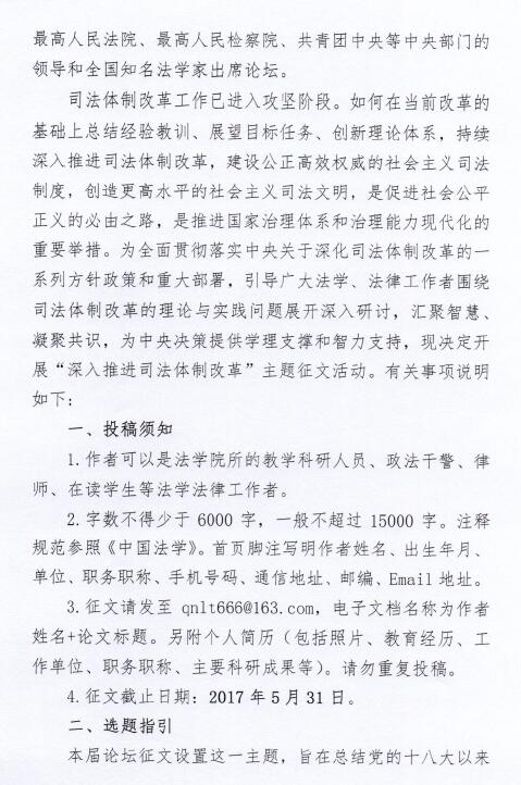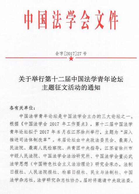 关于举行第十二届中国法学青年论坛主题征文活动的通知