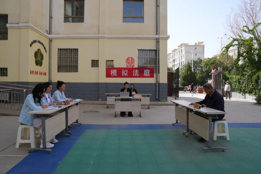 在校园里,操场化身“流动普法课堂”,宣传展板上典型案例和法律条文一目了然,“识毒防毒”展区各种传统与新型毒品样本触目惊心。“同学们,如果遇到校园欺凌怎么办?”“网上有陌生人索要个人信息能给吗……”法学专家在讲授专业法律常识的同时,结合身边发生的案例与同学们积极互动。舞台上志愿者精彩的普法文艺节目,赢得同学们阵阵掌声,永昌县职业中等专业学校党支部书记赵尚雄说:“志愿者们在这十几分钟的剧情演绎中,表现出了大大的法治智慧,教育引导广大青少年学生在思想意识中有法,日常生活中不违法,遇到问题能找法。”