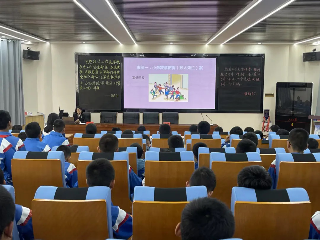 各学校充分发挥课堂主渠道作用,将法治教育纳入常规教学体系。以“守望成长 法治护航”为主题组织召开专题班会。班会内容紧密结合班级实际和学生关注点,围绕遵守校规校纪、预防未成年人犯罪、防范校园欺凌、交通安全、网络诈骗、禁毒知识等主题展开。通过生动形象的PPT、震撼人心的法治短片、贴近学生生活的真实案例,深入浅出地讲解法律知识,阐释法治精神。主题班会如同号角,有效唤醒了学生内心对遵纪守法的自觉性,强化了学生心有所畏、行有所止、恪守规矩的意识,将法治观念内化于心。