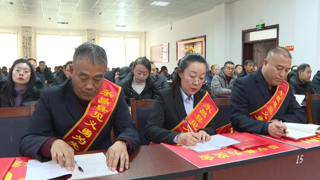 会议通报了见义勇为先进群体先进事迹,宣读了《永昌县人民政府关于授予赵琦、赵超、张存秀“永昌县见义勇为先进群体”荣誉称号的决定》,并为见义勇为先进群体颁发了荣誉证书及奖金。