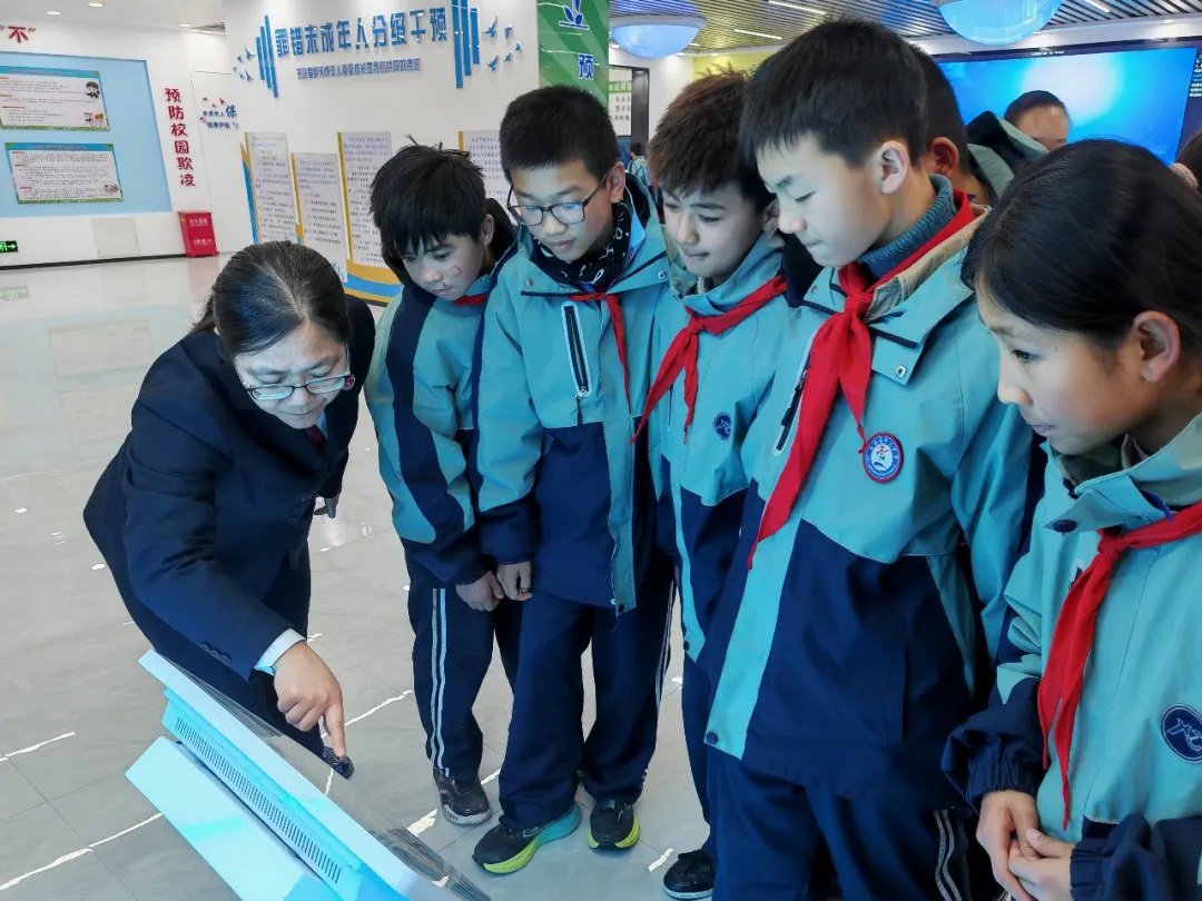 表彰大会结束后,青年普法志愿者、全国模范检察官、县检察院副检察长赵淑霞围绕预防未成年人违法犯罪开展普法宣讲。她结合未成年人犯罪典型案例,深入浅出地讲解了故意伤害、校园欺凌等常见违法行为的法律界定与后果,结合中学生年龄特点和校园生活场景,精准聚焦学生可能面临的法律风险点,将抽象的法条转化为生动的警示。宣讲结束后,青年普法志愿者向与会师生发放了普法宣传资料和宣传品。随后,部分师生前往“县青少年法治教育基地”参观学习,借助基地内的图文展示、互动体验设备等,让大家沉浸式感受法治文化,深刻认识到尊法学法守法用法的重要意义。